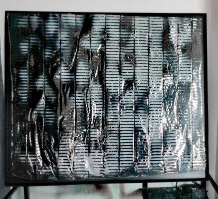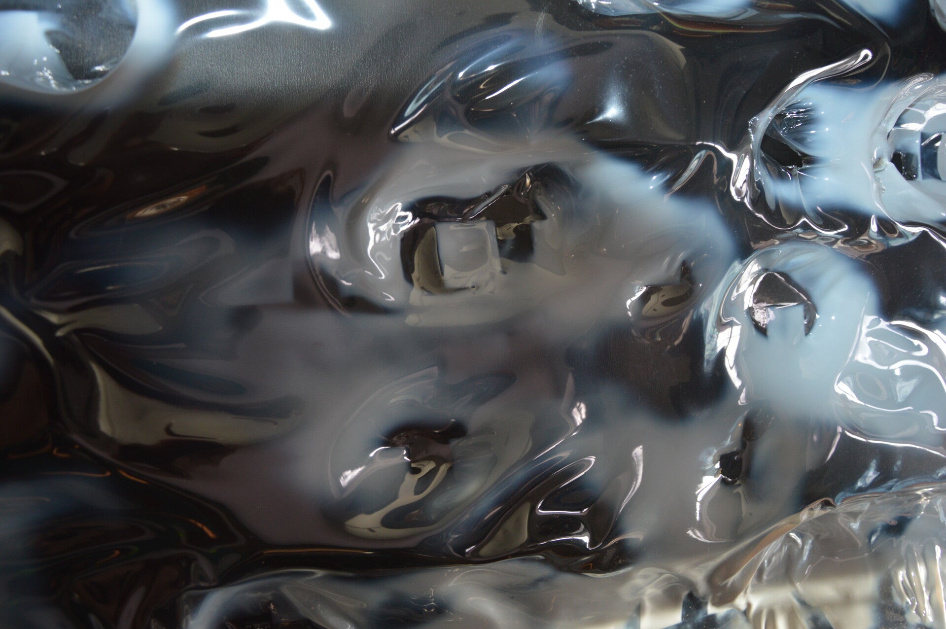 Mi spingo a realizzare e a controllare una deformazione geometrica, l’utilizzo di questo specifico materiale va oltre la sua naturale conformazione, con l’ausilio di griglie lavorando in orizzontale e sfruttando il peso del materiale stesso che a contatto con la struttura di adagia deformandosi sotto la reazione del calore.